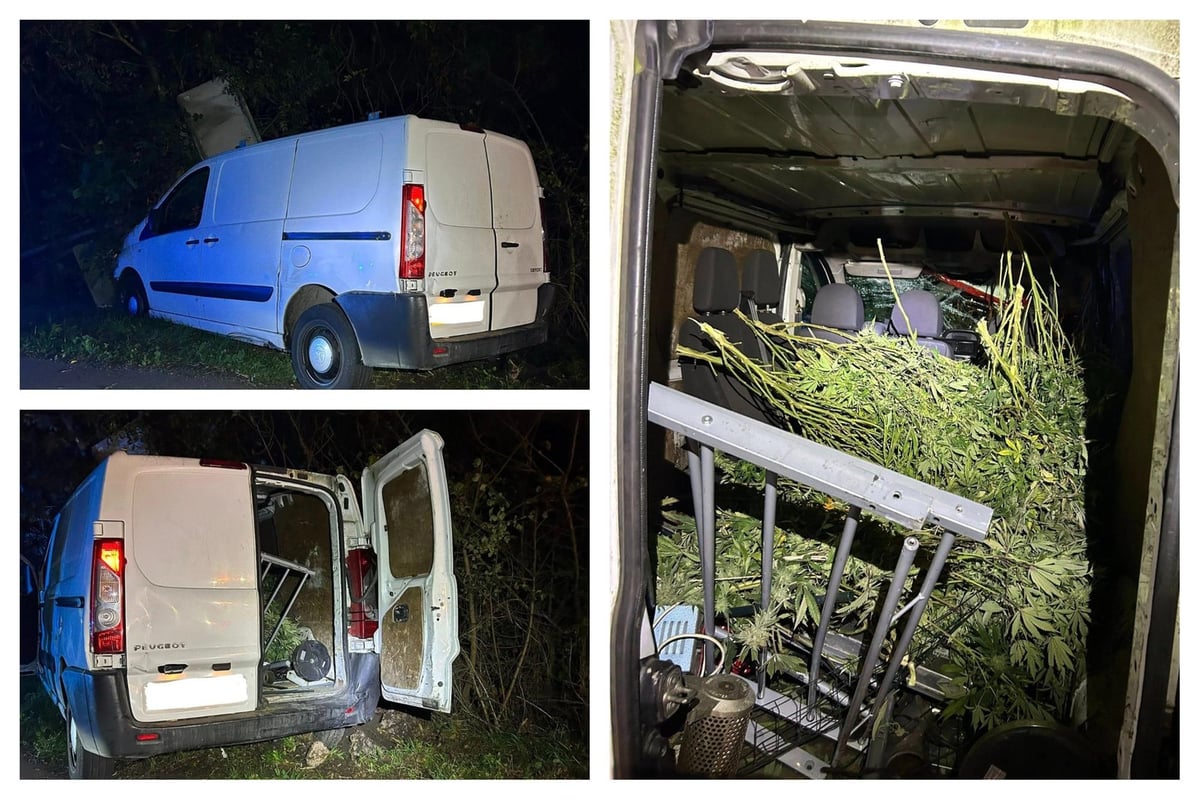 The driver of a van full of stolen cannabis supplies ‘fled into the night’ after deliberately crashing the vehicle.